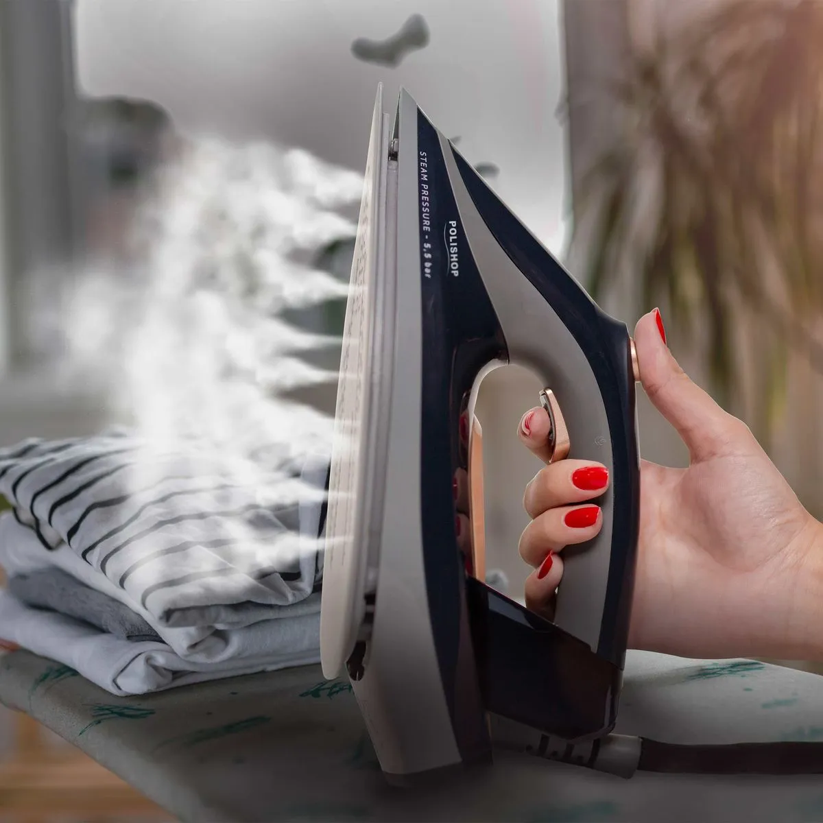 Na prática, esse vapor potente age sobre o tecido de fora para dentro, amolecendo as fibras e liberando os vincos com menos passadas. O resultado direto é menos tempo gasto na tarefa — a Polishop afirma que o ferro passa até 2 vezes mais rápido que modelos convencionais.